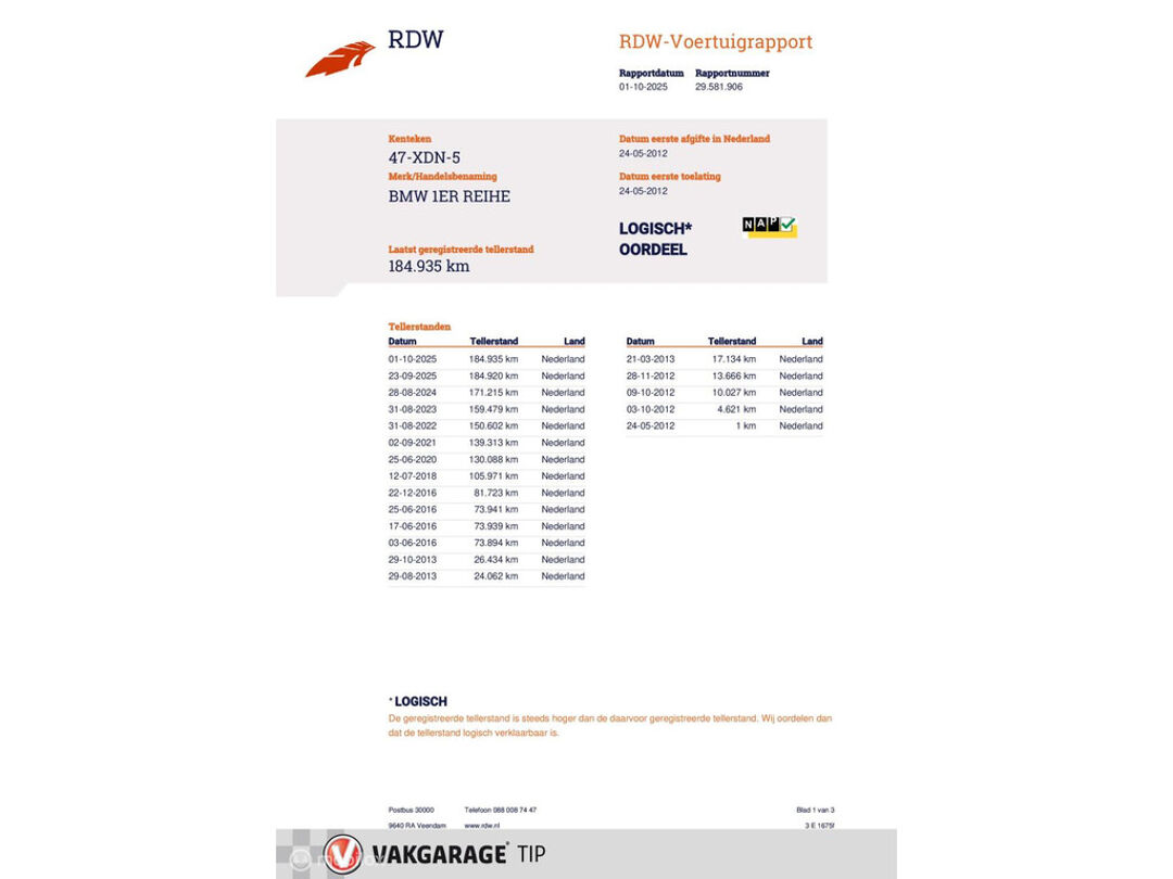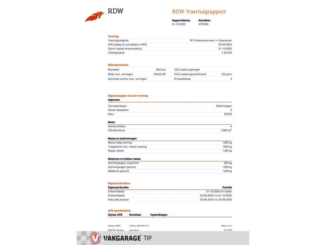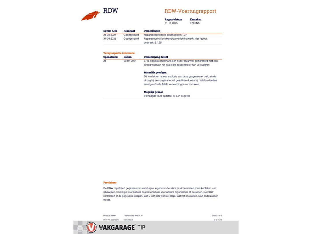 Een onderhoudsbeurt volgens schema of 12 maanden onderhoudsvrij (m.u.v dis) , een volledige car cleaning, minimaal 25.000 kilometer reserve op de distributieriem én minimaal 3 millimeter bandenprofiel, airconditioning gevuld en remvloeistof ververst, nieuwe ruitenwissers, minimaal 15 liter brandstof in de tank en 1 jaar Vakgarage pechhulp