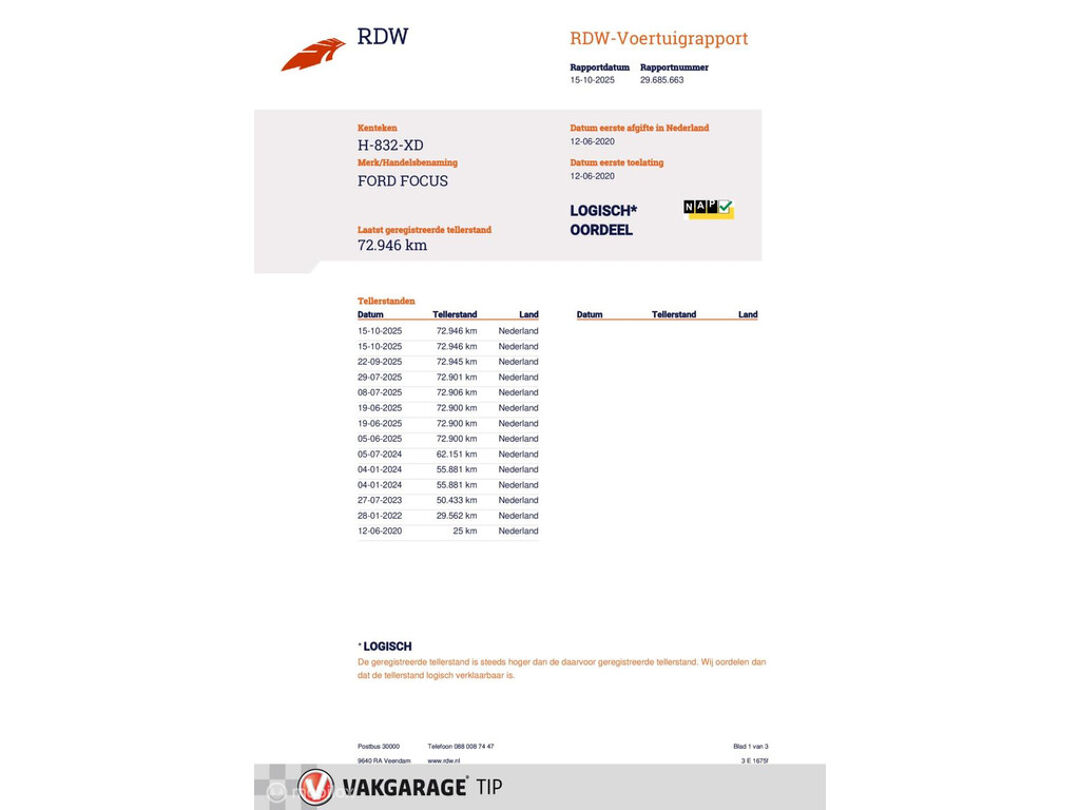 Een onderhoudsbeurt volgens schema of 12 maanden onderhoudsvrij (m.u.v dis) , een volledige car cleaning, minimaal 25.000 kilometer reserve op de distributieriem én minimaal 3 millimeter bandenprofiel, airconditioning gevuld en remvloeistof ververst, nieuwe ruitenwissers, minimaal 15 liter brandstof in de tank en 1 jaar Vakgarage pechhulp